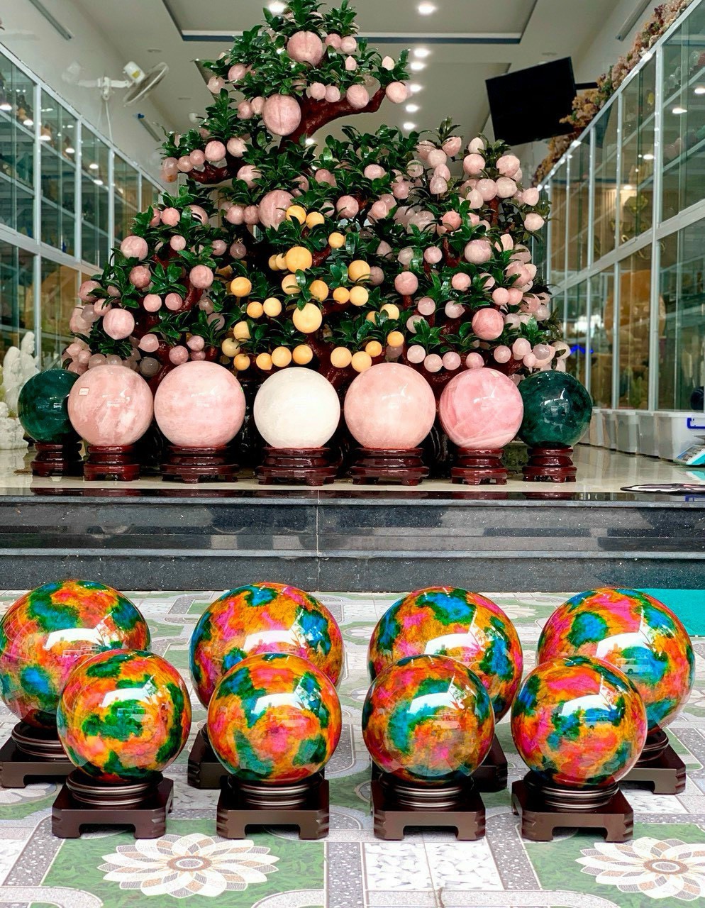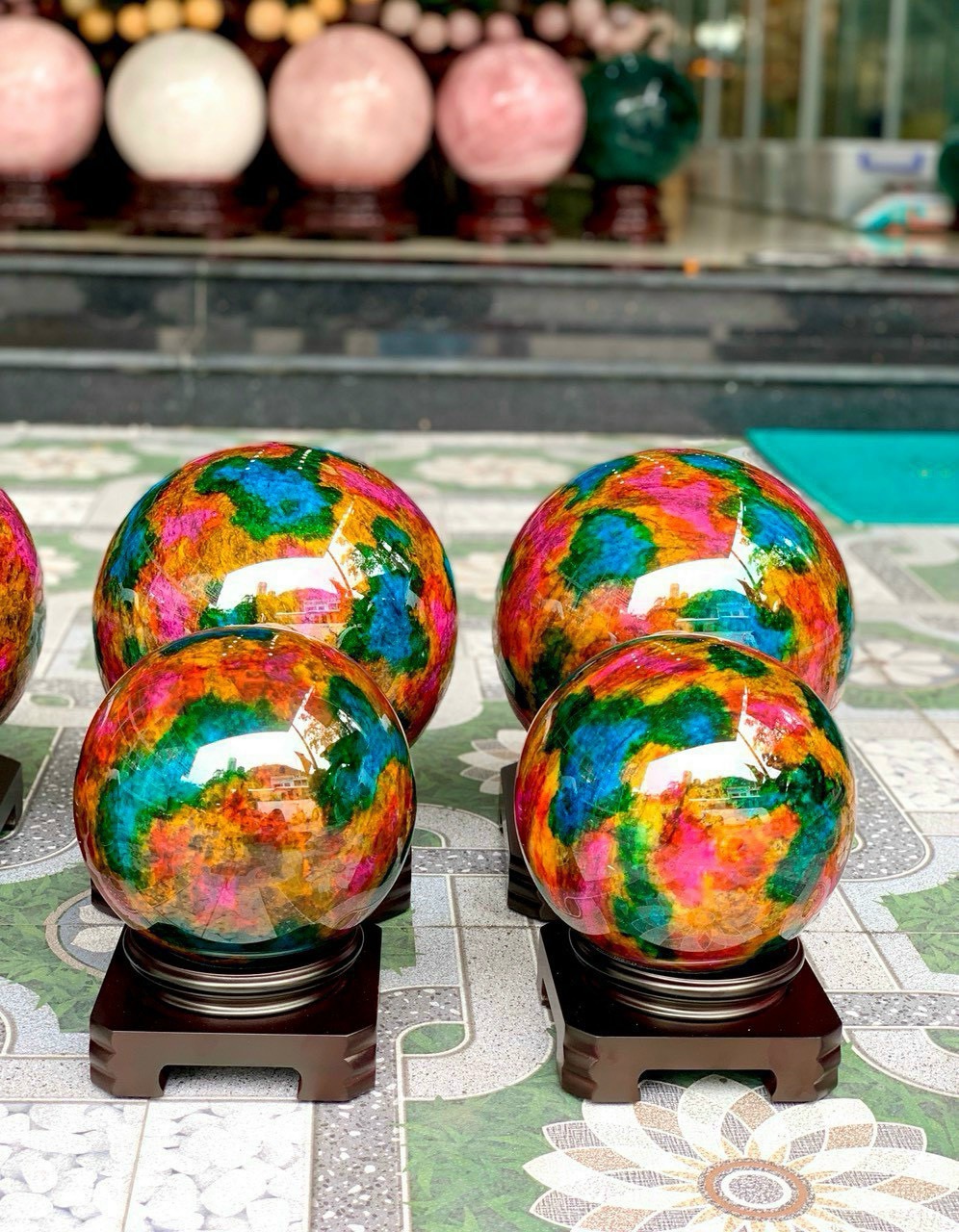 ✔️Mang đến cho bạn sản phẩm 'Bi cầu phong thuỷ tứ quý đá lông công tự nhiên trang trí quà tặng VVIP' với hai kích thước 15cm và 20cm được làm từ những loại đá và khoáng vật quý. Với hình dạng tròn biểu thị cho sự hoàn thiện của vận hành ngũ hành trong vũ trụ, sản phẩm này mang lại năng lượng dương tạo ra sức sống cho cuộc sống, công việc và sức khỏe của bạn. ✔️Quả cầu phong thuỷ này có thể được để bàn làm việc, phòng khách, bàn học hay bàn thờ Thần Tài. Bạn có thể để nó ở mọi nơi như cửa hàng kinh doanh hay két sắt để mang lại may mắn cho thành viên trong gia đình hay người yêu, đối tác, lãnh đạo..🍀